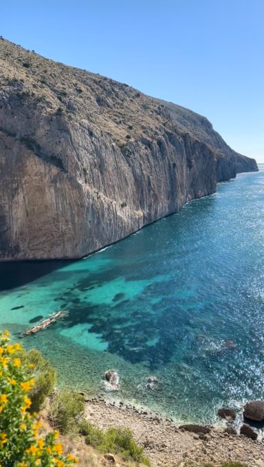Aguas turquesa protegidas por un acantilado de 300 metros de altura! Así es CALA RACO DEL CORB un tesoro del mediterráneo de aguas cristalinas, y naturaleza en estado puro.